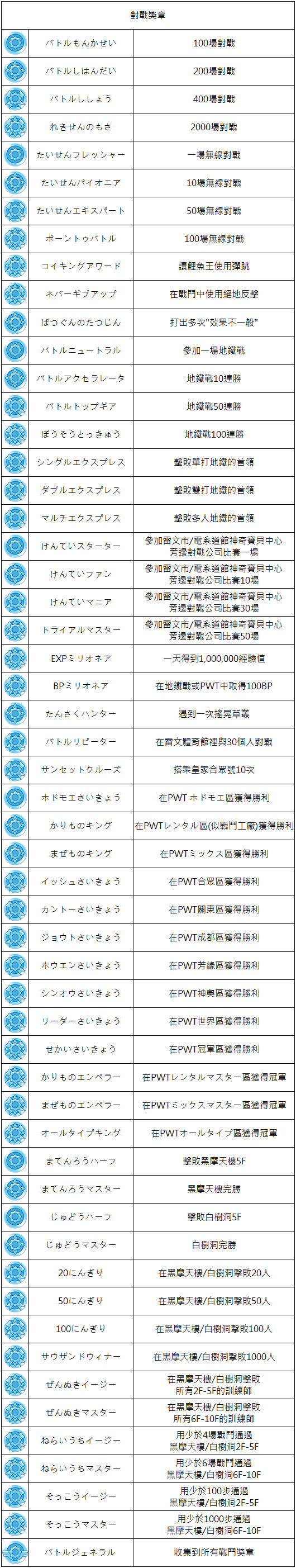 > 對戰獎章: