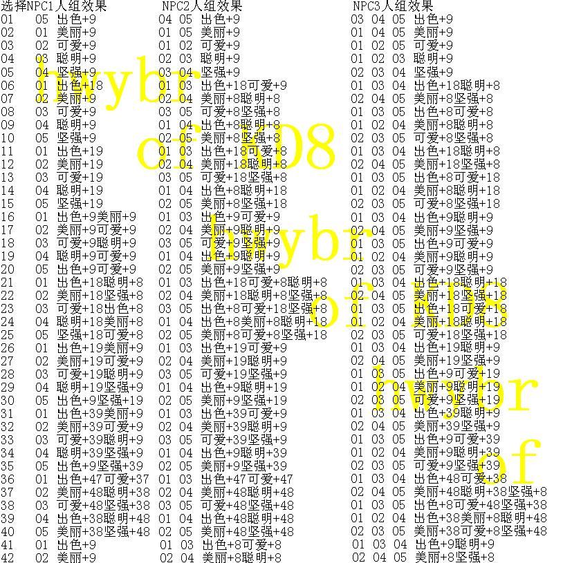 如图所示第一排数字表示你使用的树果后面3列分别展示了3种情况下(1人,2人,3人的NPC情况)